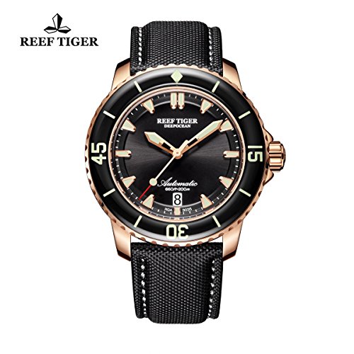 -. Title : Reef Tiger Dive Watches for Men Rose Gold Tone Nylon Strap Sport Watch with Date RGA3035