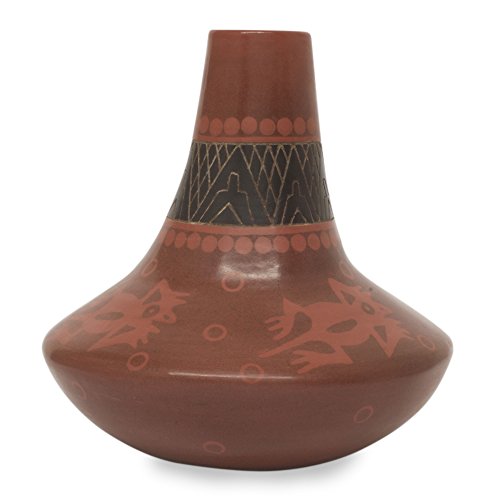 NOVICA Animal Themed Ceramic Vase, Red, 'Aztec Frogs'