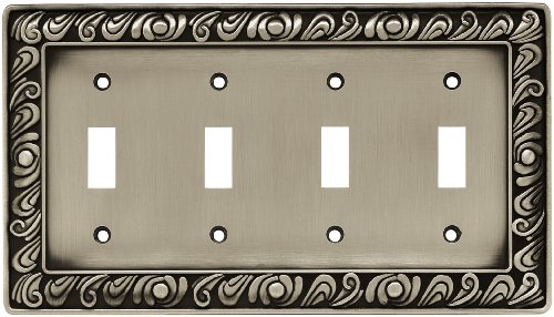 Franklin Brass 64041 Paisley Quad Toggle Switch Wall Plate / Switch Plate / Cover, Brushed Satin Pewter