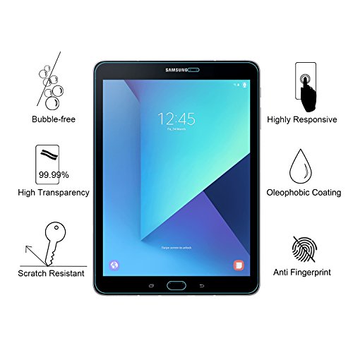 Specifically designed glass screen protection for 2017 Samsung Galaxy Tab S3 9.7" tablet, and Tab S2 9.7 inch, such as SM-T820, T825, T810, T815, T817, T813
