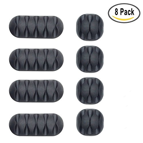 Cable Clips - 8 Pack Cable Management System with 3M Self Adhesive, Multipurpose Organizer for Desktop & Computer Messy Wires, Charging or Mouse Cord Holder