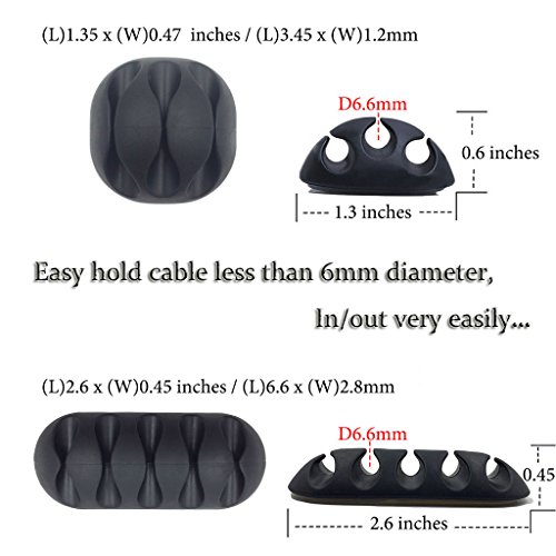 MULTI PURPOSE CABLE ORGANIZER- Using 3M self-adhesive, strong bond to uneven or smooth of surfaces. Such as desk, walls, car interiors, plastic, wood, glass, metal, rubber and so on. They will help you have your headphones, chargers, USB cables or other accessory items you most need by hand at your desk.