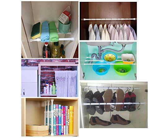 - Adjustable length: the length of rod is 12 inch to 20 inch; Content of crude iron with a spring, you can adjust rod length as curtain rod, closet rod, coat hanger, shoe rack and etc.