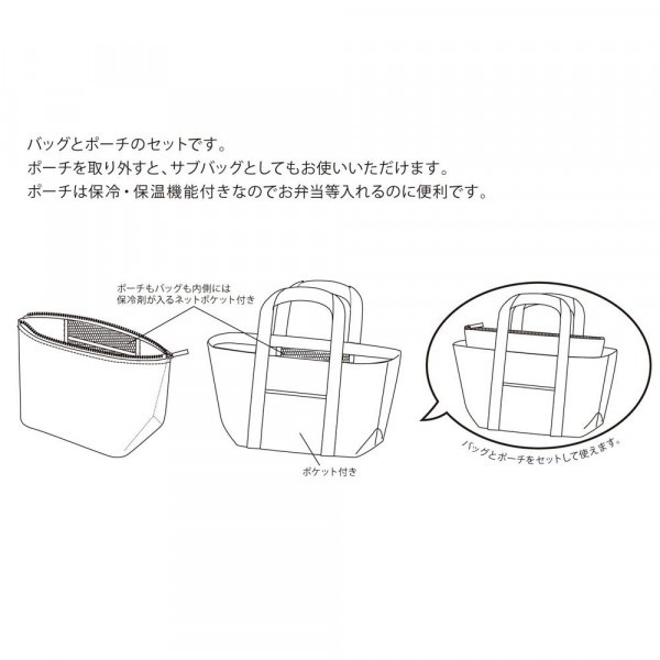 ランチバッグとポーチの2点セット。ポーチは保冷・保温機能付き。