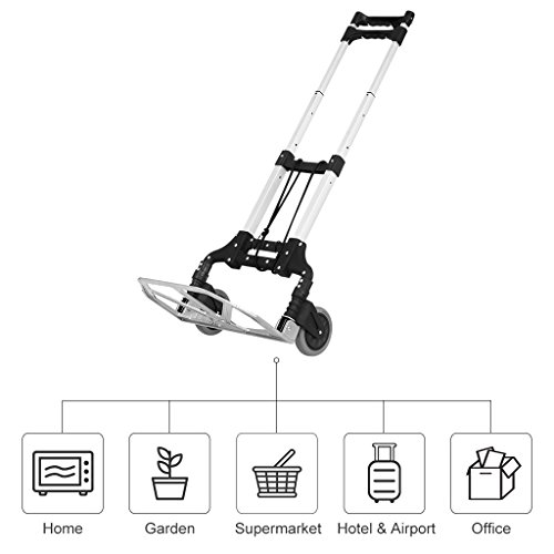 Finether Cart Aluminum Folding 2-wheel Hand Truck|Lightweight Portable Trolley dolly for Indoor Outdoor Travel Shopping Office, Black