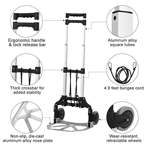 MAKE MOVING HEAVY LOADS A BREEZE: smooth-rolling wheels, ergonomic easy-grip handle and high-strength die-cast aluminum alloy nose plate make it easy to move unwieldy or heavy objects; a 4.9 feet bungee cord included and tiny bumps on the plate keep loads in place