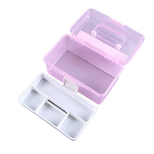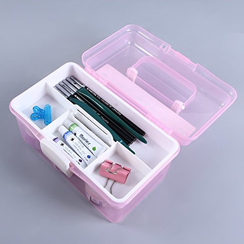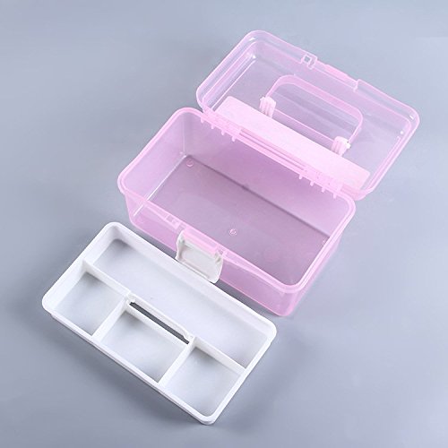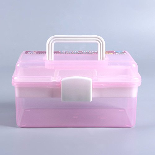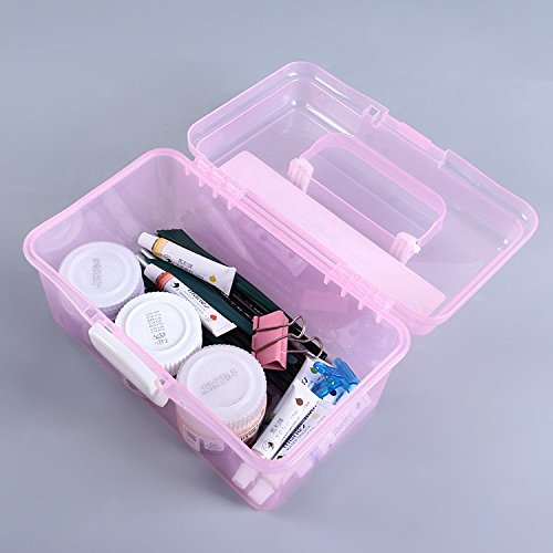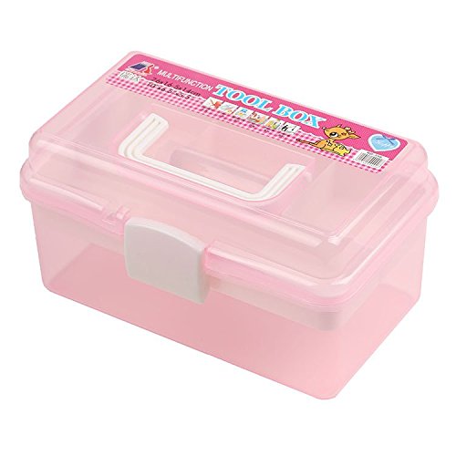 Chris.W Clear Light Pink Plastic Multipurpose Portable Handled Painting Tool Organizer Storage Box / Case w/ Removable Tray - 10"