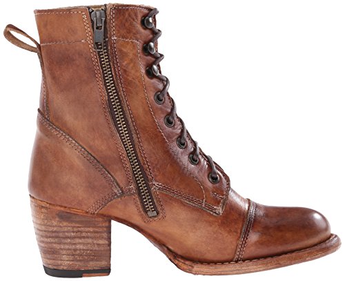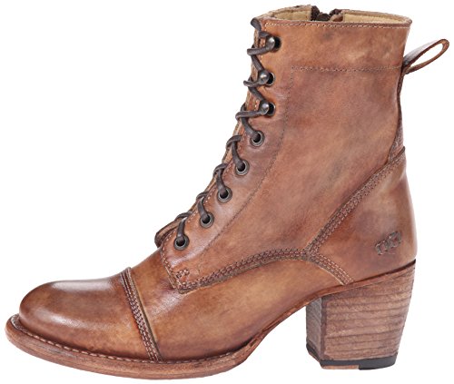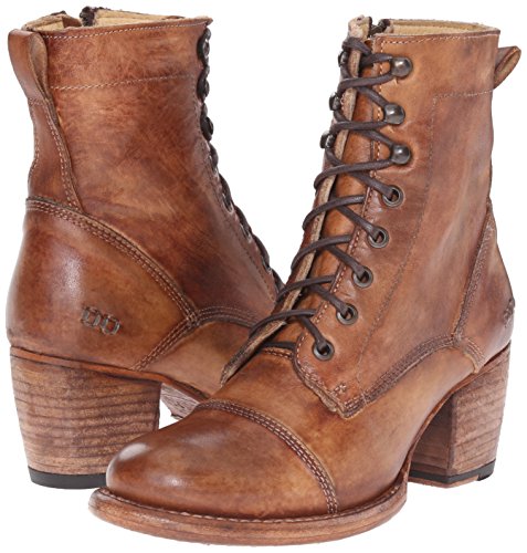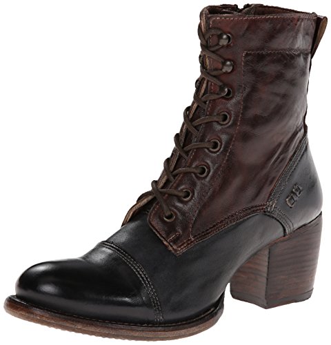 Lace-up combat style in vintage wash with cap-toe stitching and stacked heel