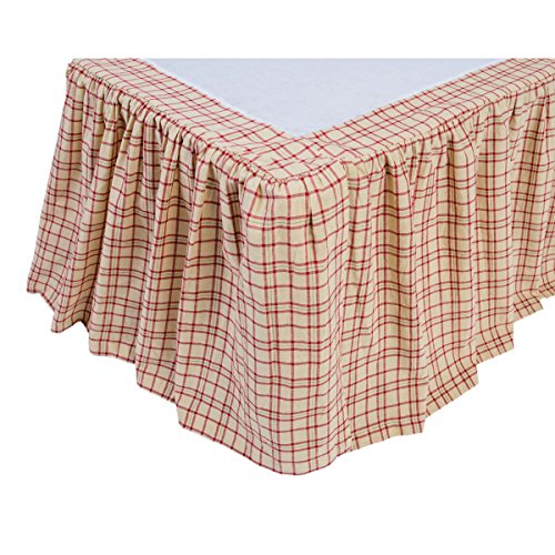 - Gathered ruffle is red, creme and green plaid fabric with 16'' drop