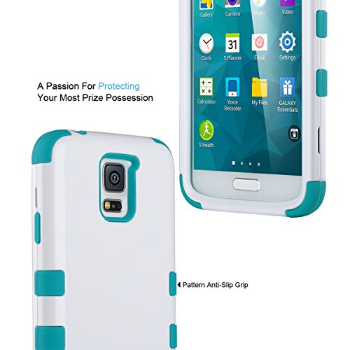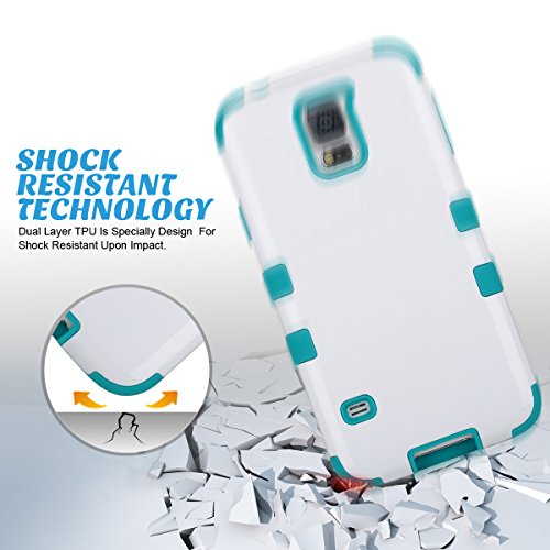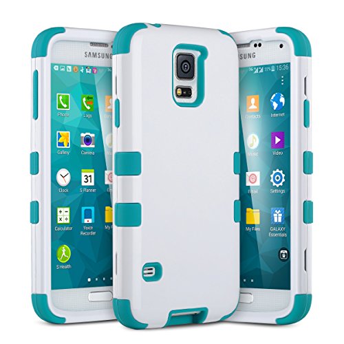 Galaxy S5 Case, ULAK Hybrid High Soft Silicone + Hard Plastic Protective Case for Samsung Galaxy S5 (White/Blue)