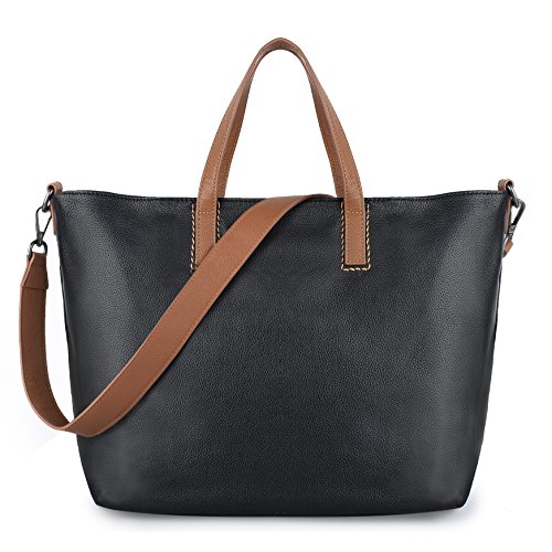 YALUXE Womens Genuine Leather Large Casual Hobo Top Handle Tote