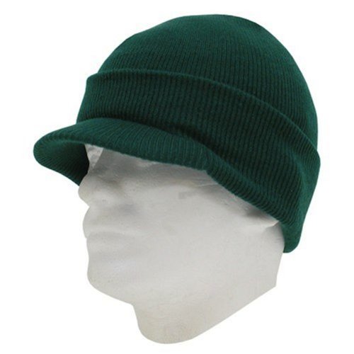 -. Title : Decky Cuffed Knit Visor Beanie Jeep Cap (One Size, Forest Green)