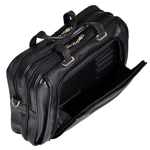 Binding : Apparel Product Description Web exclusive! Tote your business essentials in the McKlein Irving Park leather laptop case. With double compartments, a built-in laptop sleeve and multiple pockets, this leather bag delivers all the space you need to keep items organized and easily accessible. Top handles and an adjustable shoulder strap offer comfortable carrying options, while the Smart Attach system provides added convenience when traveling. 0