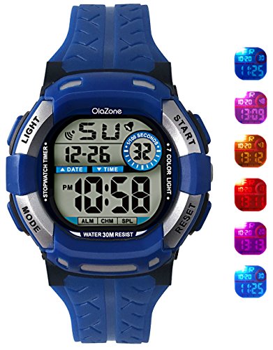 This modern watch with a silver dial allows you to watch the time in digital format. Suitable for school, everyday life, it offers many exciting features such as 7-color flashing, large digital face, alarm clock settings and calendar.