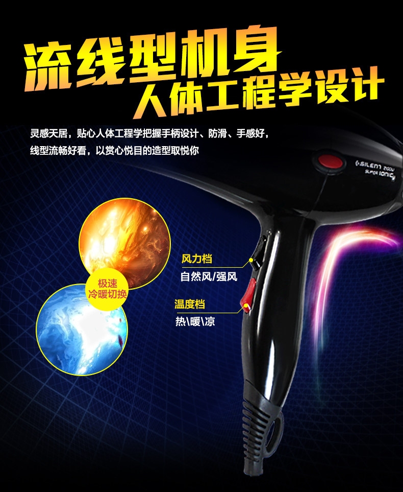 Hair Dryer High Power Home Machine Use Anions Household Styling 2100w Industrial Electric Tools Professional Blow Electric Dryer★Blower Hairdryer ★Negative Ion Cylinder Household Salon Grade CF05