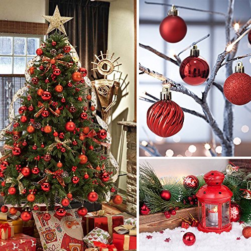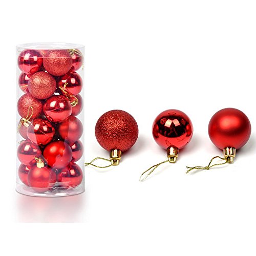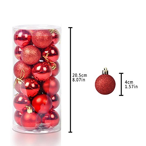 Christmas Ball Ornaments - 24ct Shatterproof Christmas DecorationsTree Balls Small for Holiday Wedding Party Decoration, Tree Ornaments Hooks included 1.57 "(40mm Red )