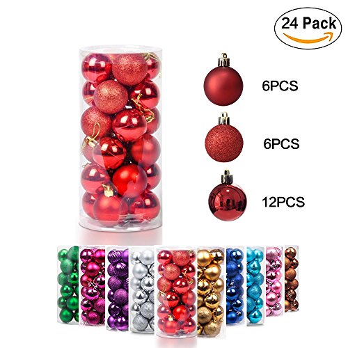 Pack of 24 Christmas Ball.They are done in 3 amazing finishes - shiny, matte, glitter drenched Christmas Tree Ornaments.