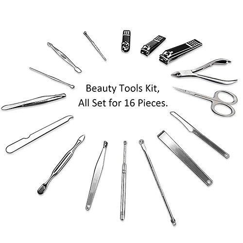 Studio : Solofish Publisher : Solofish Binding : Misc. Product Description Description: Solofish Beauty Tools Kits is the best choice to care your hands, feet and face. All sets for 16pcs, Including nail clippers, nail file, dead skin push, double pick, dead skin pliers, pedicure knife, scraping knife, scraping cutter, toenail clippers, eyebrow scissors, eyebrow tweezers, acne needle, earwax sppon, screw earwax spoon, eyebrow scissors. Multifunction and widely use, meets all of your demand.
