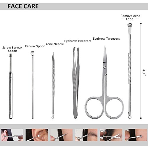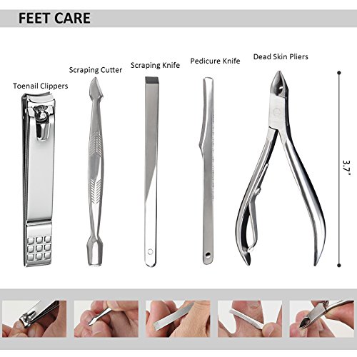 Features: Egonomically designed for comfort and an easy grip. Premium brushed stainless steel that lasts a lifetime. Durable! Tools sets come with a portable and fashionable appearance storage case, good for travel or home use and it's a great ideal gift for your friends or family. Full range of hands, feet and face care. Multifunction and widely use, meets all of your demand.