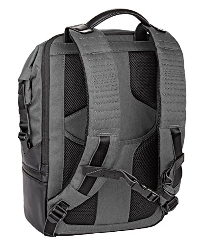 -. Feature : Leather top carry handle, Roll top opening with zip closure and compression straps, Back zip computer compartment with pass-through to main compartment, Adjustable quilted backpack straps, Adjustable sternum strap to stabilize weight across chest, Mu / 12 laptop compartment, 1 media pocket, 1 zip pocket, 2 business card pockets, 1 pen loop, Key leash / 11.5x17.5x6