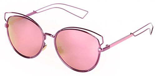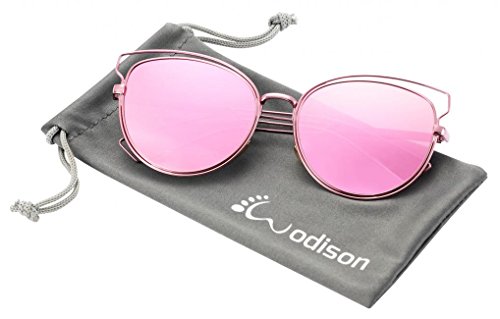 WODISON UV400 Reflective Mirror Lens Hollow Metal Frame Cat Eye Polarized Sunglasses for Women