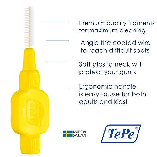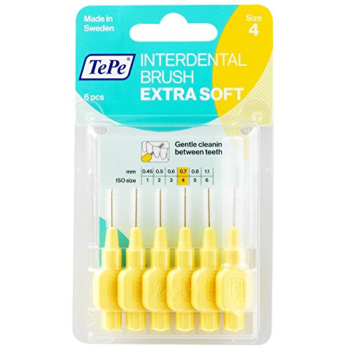 TePe INTERDENTAL BRUSH ORIGINAL - Yellow 0.7mm 6 Pack - Recommended by Dentists for Best Oral Health, Healthy Mouth & Gums Between Dental Visits, Prevent Bad Breath and Periodontal Disease