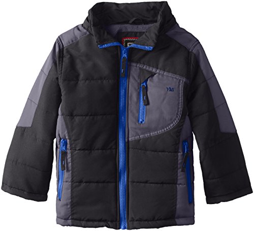 YMI Little Boys' Color Block Bubble Jacket with Detachable Hood, Black, 4