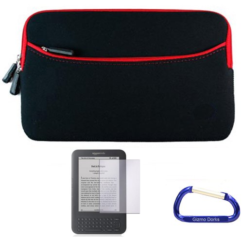 -. Title : Gizmo Dorks Zipper Sleeve Case (Black with Red Trim) with Screen Protector with Carabiner Key Chain for the Amazon Kindle Keyboard