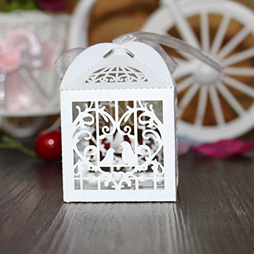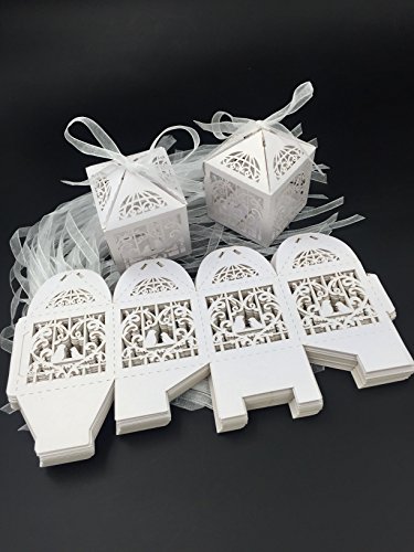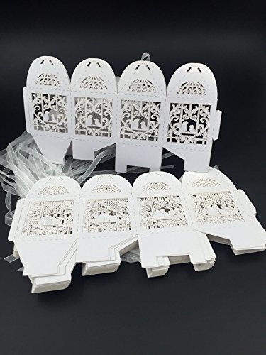 DGQ 50PCS Heart Candy Boxes with Ribbon Wedding Party Lanterns Holder For LED Tealight Candle
