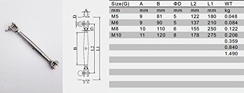 Closed Body Jaw Turnbuckle M5 for Tighten Taut Rope Stainless Steel 304