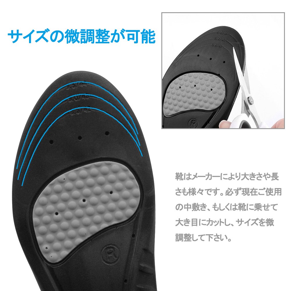 The size of the insole can be adjusted freely according to the size of the shoe by cutting with scissors in the cut line of the toes.