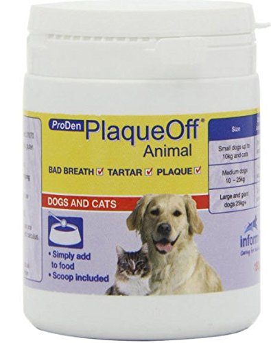 -. Binding : Misc. -. Brand : Plaque Off -. EAN : 0754220465957 -. Feature : 100-percent natural oral supplement for dogs and cats / Made from a specific strain of seaweed harvested from above scandinavia / Promotes healthy teeth, gums and fresh breath / Effective against Tartar, Plaque, and bad breatg -. Label : International Dental -. Manufacturer : International Dental -. PackageQuantity : 1 -. ProductGroup : Pet Products -. ProductTypeName : PET_SUPPLIES -. Publisher : International Dental -. Studio : International Dental -. Title : PlaqueOff Animal 180 gram Tub Cheapest price -. UPC : 754220465957