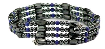 -. Title : Simulated Lapis Wrap Around Simulated Hematite - Magnetic Therapy Bracelet/Anklet (WA-L1)