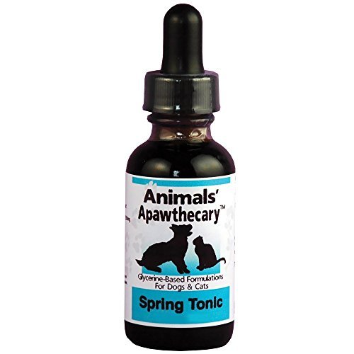 Animals' Apawthecary Spring Tonic supports normal respiratory function in cats or dogs with allergies using an organic herbal formula. This formulation combines extracts from several herbs to combat the effects of hay fever; the nettle leaf acts as a natural antihistamine while eyebright and licorice root combat inflammation. Licorice root also acts as an expectorant to prevent coughing and sneezing. Animals' Apawthecary Spring Tonic also contains burdock root, which supports liver function to help eliminate potential allergens from your pet's system. This bottle comes with 2 fluid ounces of the tincture but there is also a bottle that holds 1 fluid ounce . Protect your pet from allergies this season with this natural herbal formulation order now Key Features: Supports respiratory function and combats allergies in dogs and cats Organic herbal formula is natural and gentle on your pet's stomach Available in 1 or 2 fl oz bottlesFeature