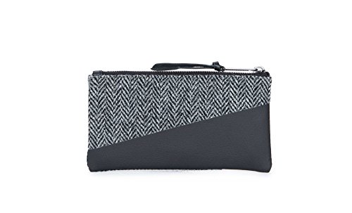 Featuring screen printed harris tweed fabric in contrasting front and rear panel tones, the minimal network small pouch provides convenient accessory storage.
