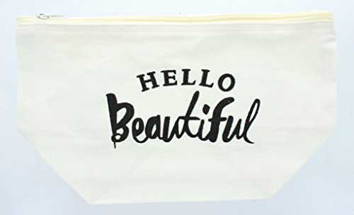 Off White "Hello Beautiful" Make up Bag, 7" x 12"