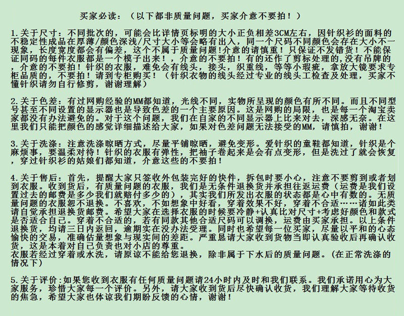 【色差】网购均有色差,不能接受微小色差者慎重,本店不承担因色差问题产生的退换,鞠躬敬谢!