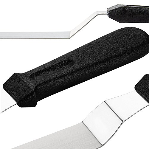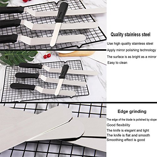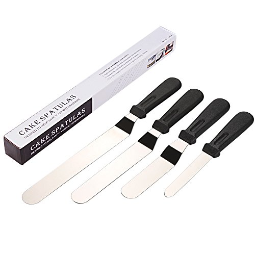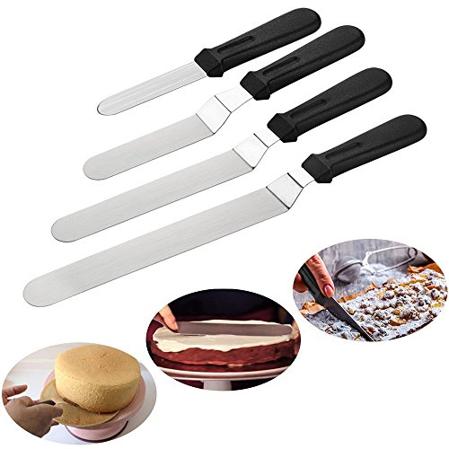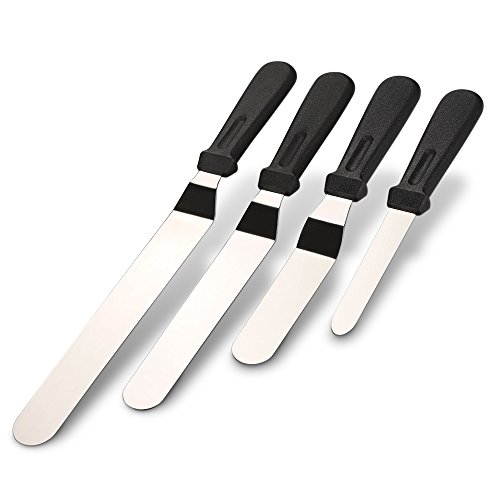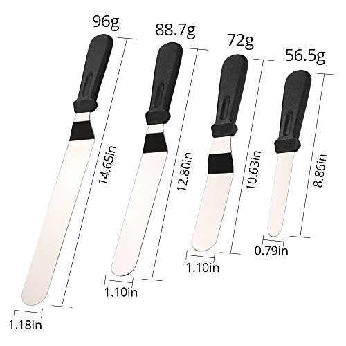 Includes: 1* 4 inch offset Stainless Steel icing spatula 1* 6 inch offset Stainless Steel icing spatula 1* 8 inch offset Stainless Steel icing spatula 1* 10 inch offset Stainless Steel icing spatula