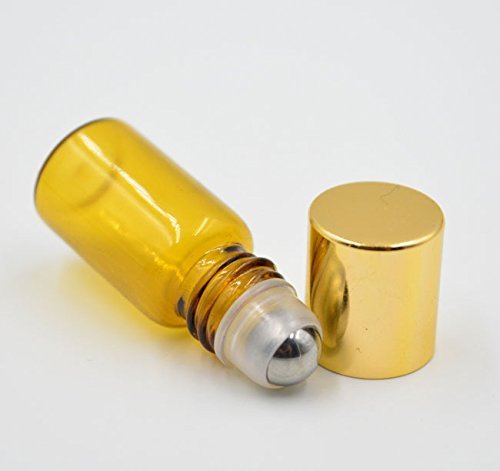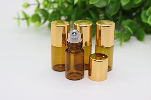 TOPWEL 3ml Refillable Amber Glass Roller Bottles with Metal Roller Balls and Gold Plastic Lids (12)