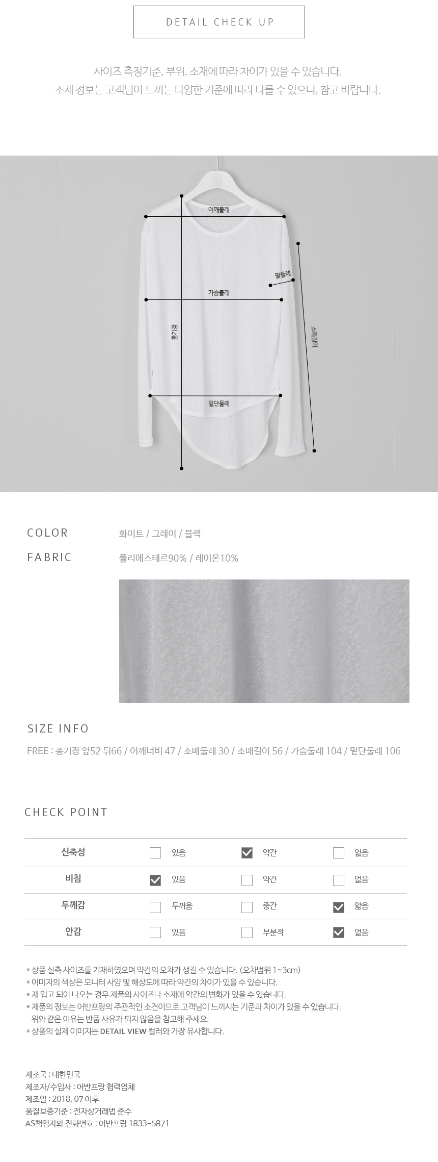 얇은 소재감은 레이온 혼방으로 부드럽게 바디 라인 따라 흐르며