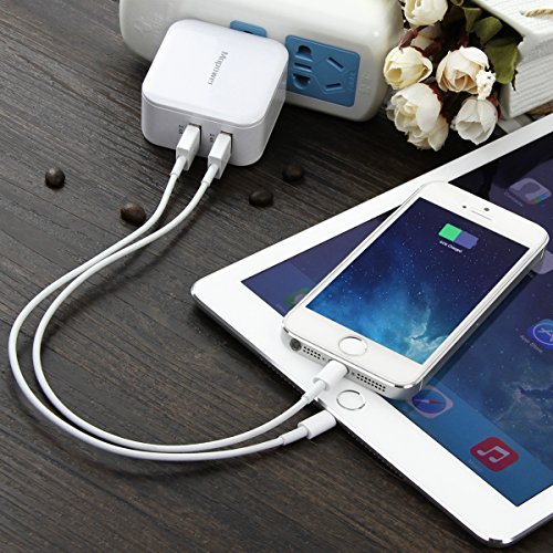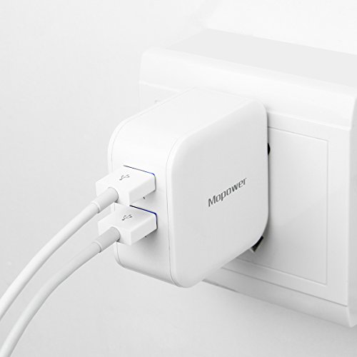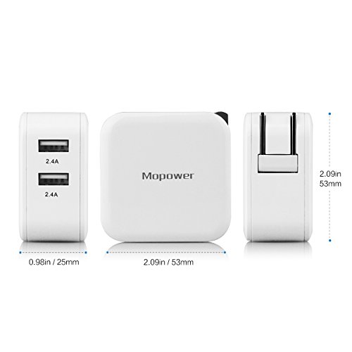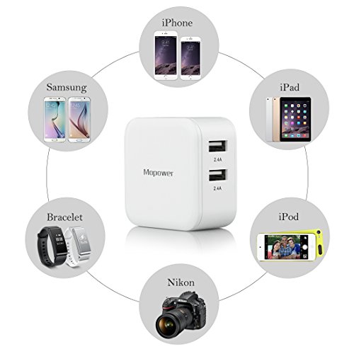 Mopower 4.8A/24W Dual Port Travel Wall Charger with SmartID Technology,Foldable Plug for iPhone,iPad,Samsung Galaxy,Tablet,Smartphone,Smart Watch,Back Up Battery and More White