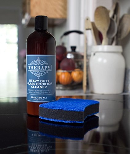 -. Feature : Cooktop cleaner kit is safe for all ceramic glass tops. / Removes grease, oil, burnt, and baked on stains / Scratch-free formula with no petroleum solvents / Safe for all glass, ceramic, and induction cooktops / Cooktop cleaning kit includes 16 oz. Therapy Heavy Duty Cooktop Cleaner and non-abrasive scrubbing sponge