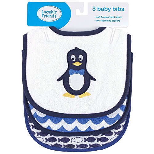 Luvable Friends 3 Pack Baby Drooler Bibs, Penguin
