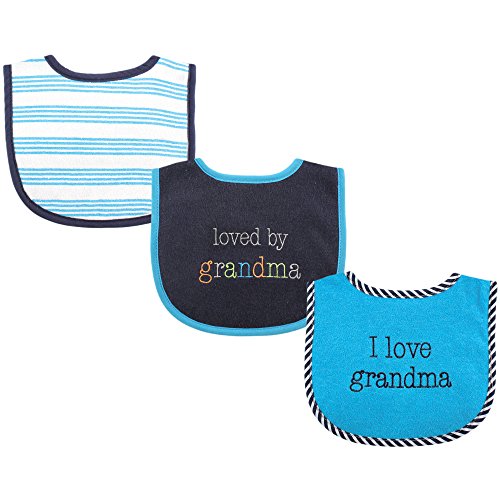 Luvable Friends 3 Piece Drooler Bibs with Fiber Filling for Boys, I love Grandma