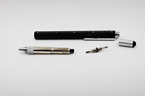 The multifunction ool pen comes with 6 very handy functions: a Gradienter, a ruler, a ballpoint pen, a stylus, a mini flat-head and Phillips screwdriver.