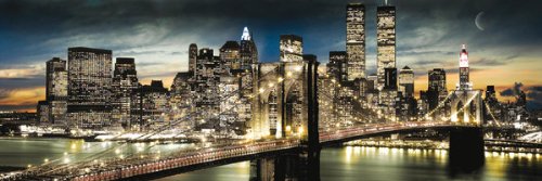 New York City Manhattan Night and Moon Decorative Travel Photography Art Print Poster 12x36