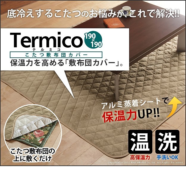 商品について:アルミシート入りのこたつ敷布団カバーです。アルミシートが熱を反射するので、熱が逃げにくく保温力UP。敷くだけで底冷え解消!お手持ちのこたつ敷きがぽかぽか仕様に♪取り外しも簡単ゴムで留めるだけ。汚れたらサッと外してお洗濯(手洗い)できます。
