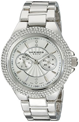 Studio : TWI Watches, LLC Publisher : TWI Watches, LLC Binding : Watch Product Description This elegant Akribos XXIV women's bracelet watch features a round case with genuine crystals on the bezel and dial. It has a guilloche pattern dial and luminescent hands. The Swiss multifunction displays the day and date. 0