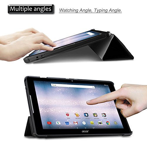 Infiland Acer Iconia One 10 B3-A30 case, Tri-Fold Ultra Slim Shell Stand Case cover for 10.1 Inch Newest Acer Iconia One B3-A30 IPS Touchscreen 1.3GHz MediaTek MT8163 quad-core Tablet, Black