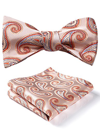 -. Title : HISDERN Men's Paisley Jacquard Wedding Party Self Bow Tie Pocket Square Set
